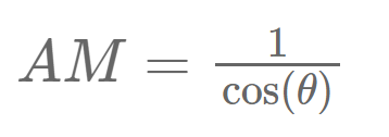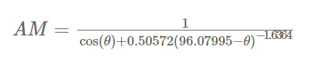 θ 是與垂直的角度(天頂角)當(dāng)太陽在頭頂正上方時(shí),大氣質(zhì)量為1